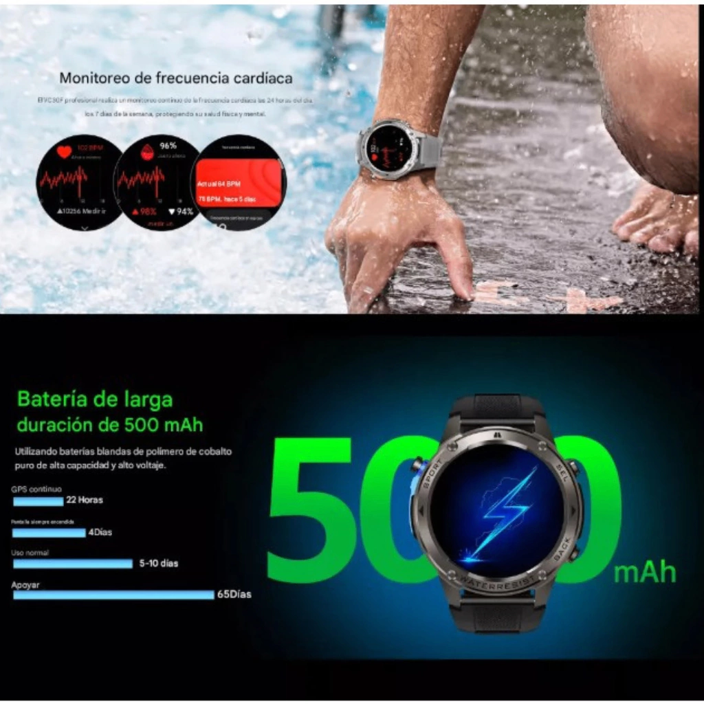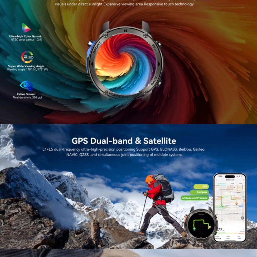El DM56 combina diseño resistente con tecnología avanzada: GPS incorporado, llamadas Bluetooth, monitoreo de salud y resistencia al agua 5 ATM. Ideal para deporte, trabajo y uso diario. Su pantalla AMOLED 1,43” de bordes redondeados brinda colores vivos y alto contraste para ver todo con claridad. Elegí entre múltiples modos de entrenamiento, definí objetivos y seguí calorías, distancia y tiempos. Personalizá tu estilo con +200 watchfaces y menús configurables.