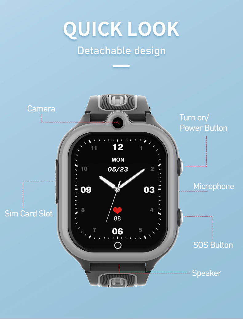 El DF91 para niños ofrece seguridad y diversión en un solo dispositivo: GPS en tiempo real, llamadas, cámara integrada y resistencia al agua IP67. Un reloj que brinda tranquilidad a los padres y entretenimiento a los chicos.